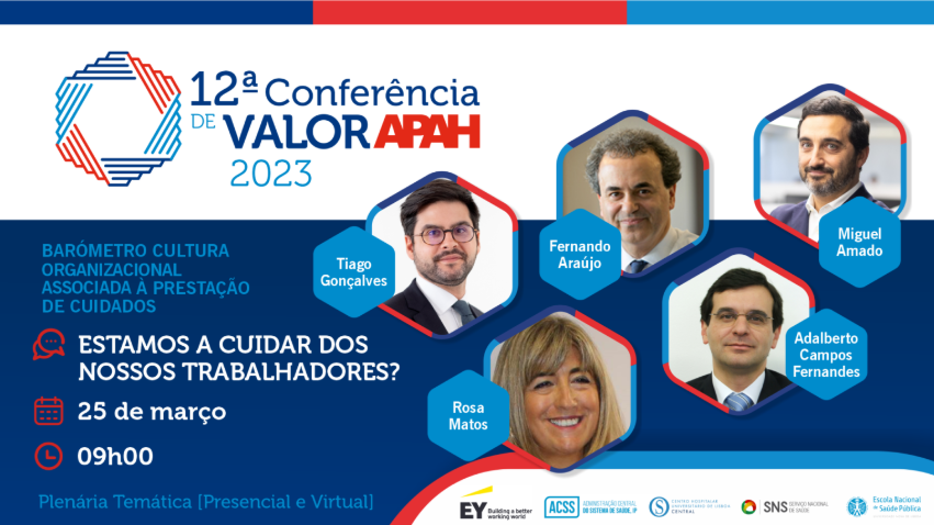 A Associação Portuguesa de Administradores Hospitalares (APAH) promove, desde 2017, as CONFERÊNCIAS de VALOR APAH tendo como desígnio a identificação de soluções e novas respostas que visem ultrapassar os desafios presentes e futuros, procurando a construção de pontes e sinergias com todos os agentes que permitam uma melhoria da qualidade e excelência dos resultados em saúde em Portugal.